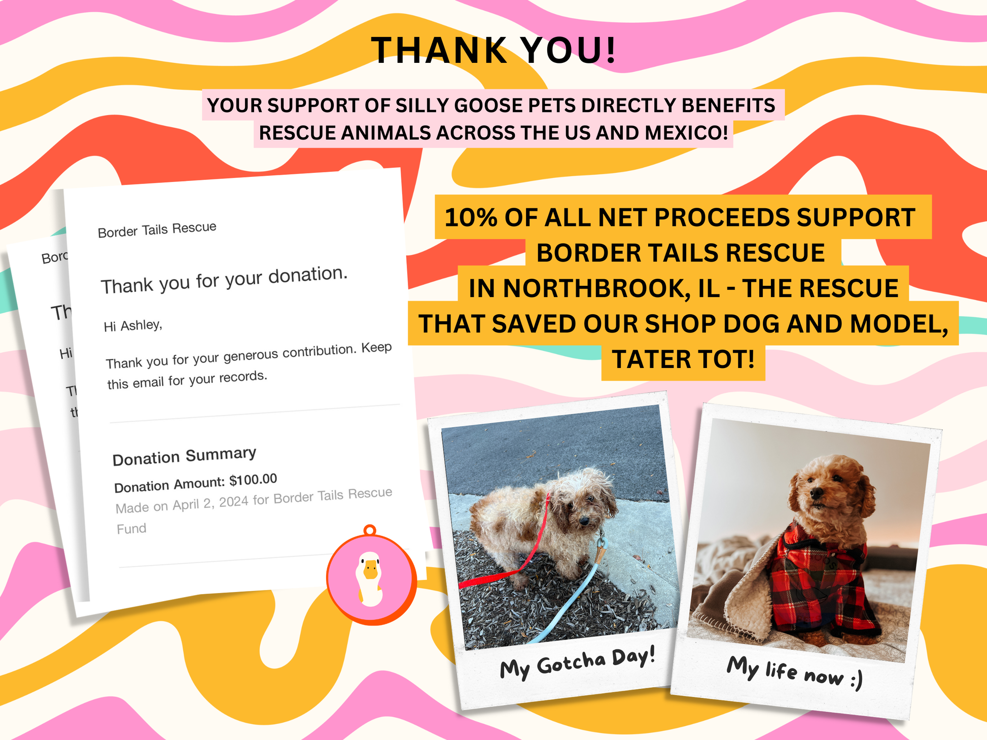 If you have any further questions, please don't hesitate to contact us at hello@sillygoosepets.com.