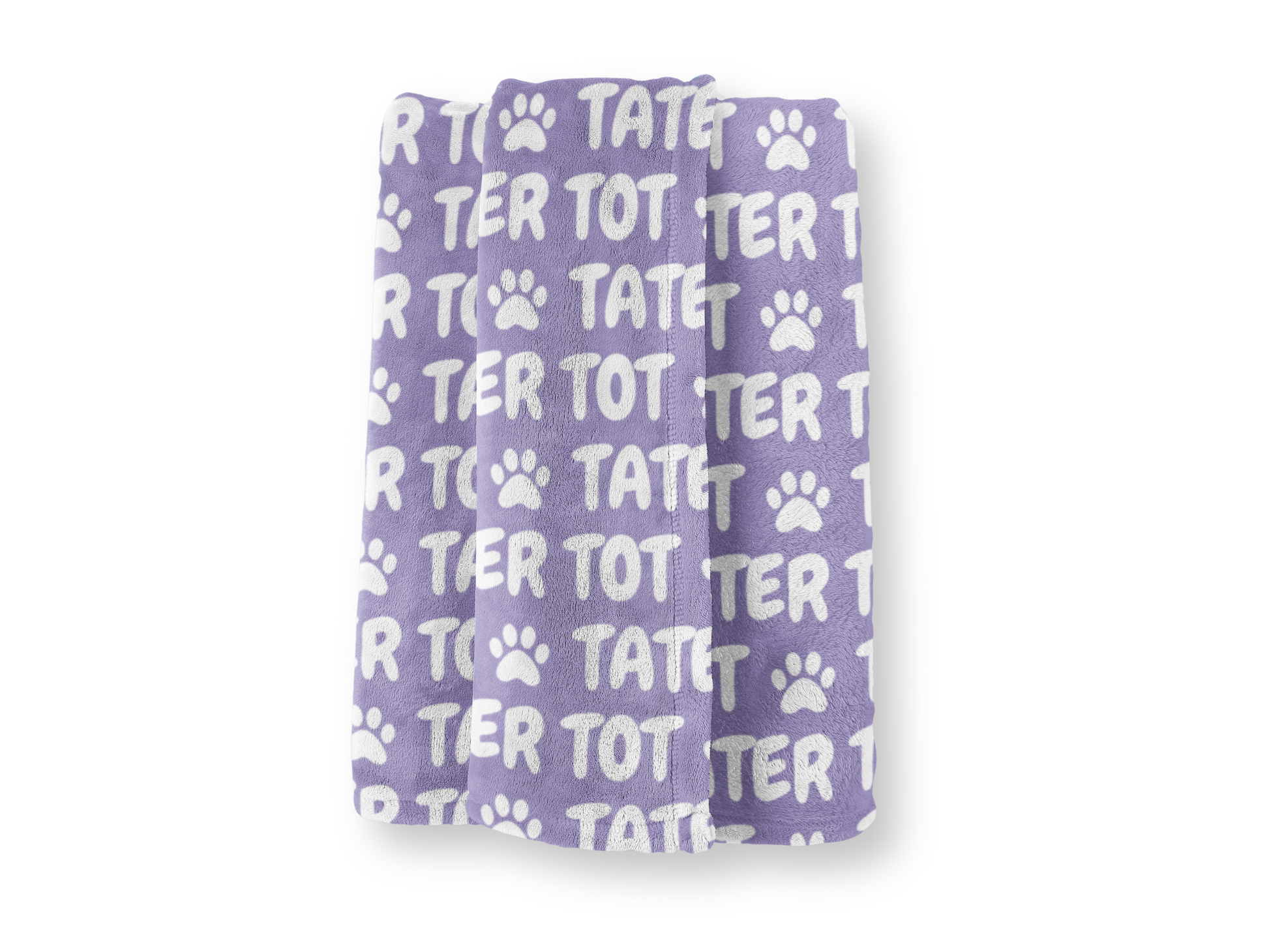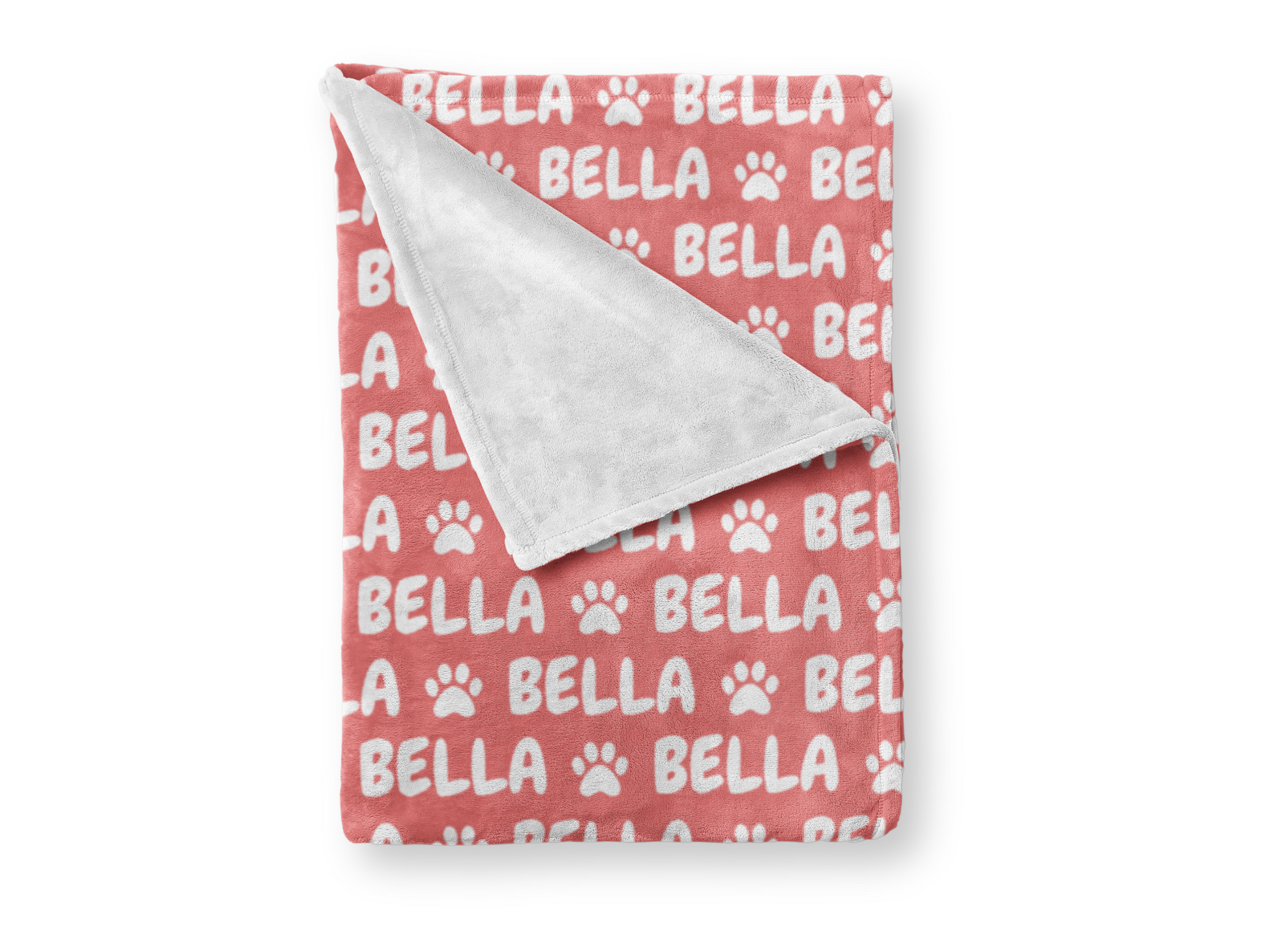 Each blanket is custom printed on one side with your pet’s name and your choice of background color to create a truly unique accessory.