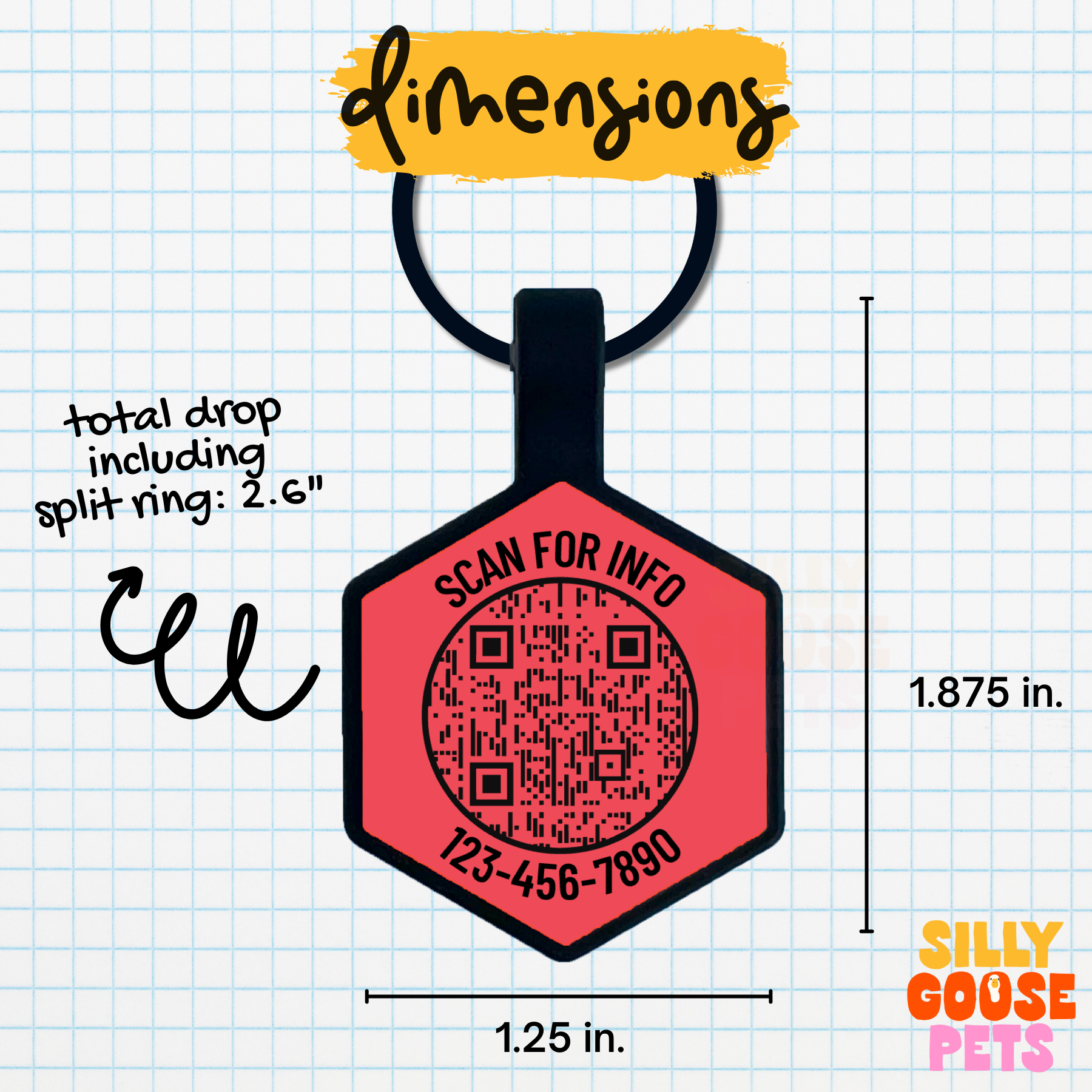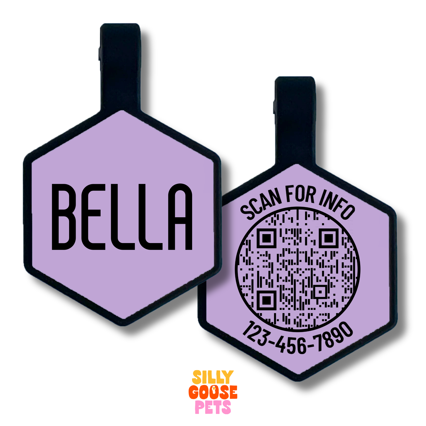 Keep your pet safe with the ultimate combination of classic and modern ID. The QR Code Silicone Pet ID Tag features your pet’s name on the front, an engraved phone number plus a scannable QR code on the back that links to a free, customizable digital pet profile.