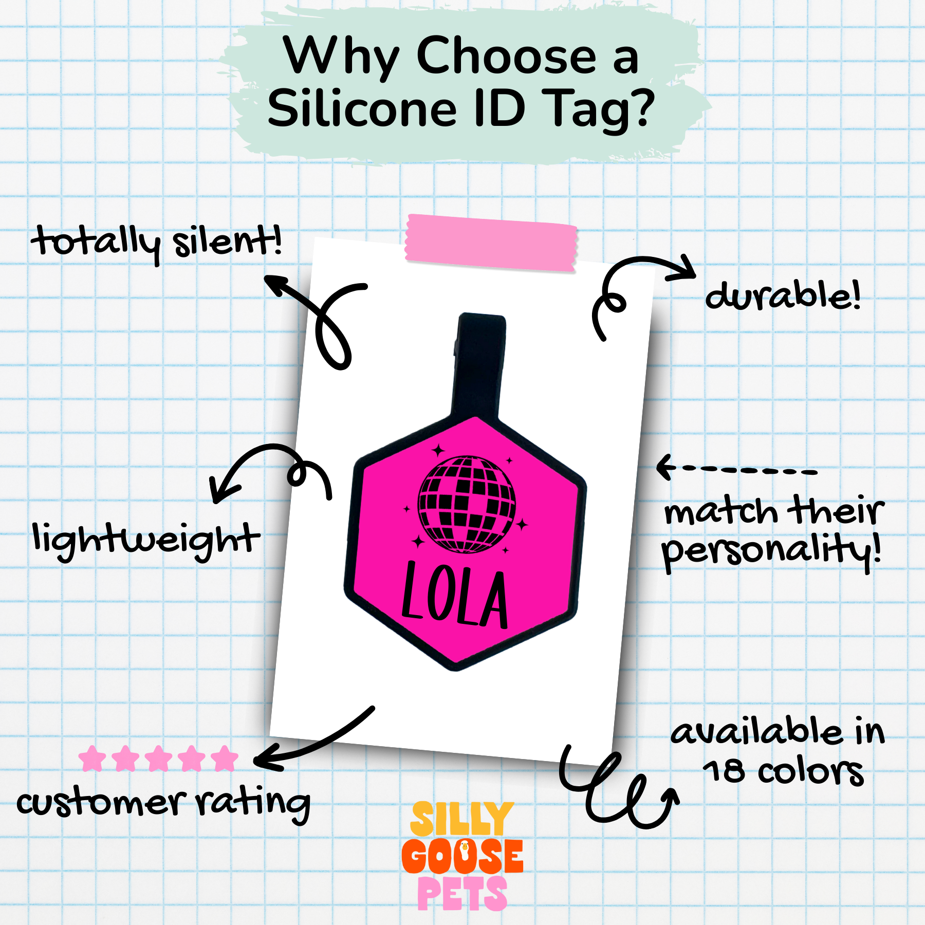 QR Code Silicone Pet ID Tag – Silent, Smart & Fully Customizable