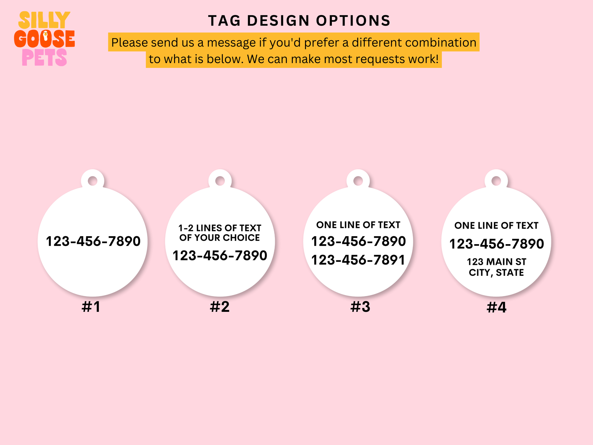 Handmade to order, each tag is printed on both sides with the club emblem on the front and your pet’s name and personalized contact information on the back.